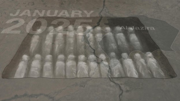 Egy helyi közösségi vezető elmondta, hogy látta, amint katonák három holttestet dobnak egy csatornába. Később bejárta al Jazirát, dokumentálva az elpusztított kambosokat, beleértve olyan falvakat is, amelyeket az RSF sosem foglalt el.